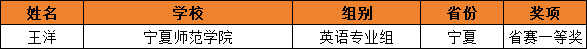 2024年第五届全国高等院校大学生英语能力大赛省赛已于5月18日圆满结束。省赛共有来自北京大学、上海外国语大学、同济大学、复旦大学等960所高校学生参加,大赛分为【非英语专业组】【英语专业组】和【专科生组】,每组分开评奖,共计评出省赛一等奖:325人;省赛二等奖:624人;省赛三等奖:765人。为保障比赛公平公正,根据大赛考试要求,现已对答题过程中多次切屏的违纪者采取扣分处理,情节严重者已取消考试成绩。各参赛选手可登录官网个人中心查看省赛成绩及获奖入围情况。现公布宁夏赛区的【非英语专业组】【英语专业组】和【专科生组】获奖名单如下: